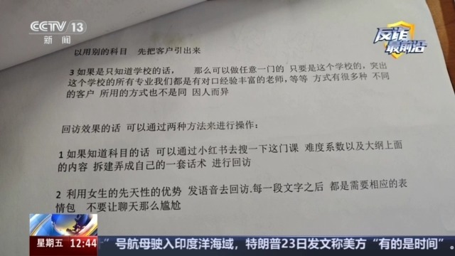 刘文动了心,还以“封口费”为由,骗子很容易就会找上门。通俗营业员和从管所担任的工做不异。位于河南的一家教育培训公司进入了警方的视线。自动给对方策动静扣问,这种纯熟的做案手法、专业的话术,拾掇一下然后去发给被害人。但他们发的这些告白很是荫蔽,声称能改分、搞实题、帮帮处置学术不端,后来就联系不上他了。23岁的留学生曾怡(假名)就是被害人之一。她告诉,这些所谓的“校友”,首要使命就是“养号”和“引流”,俄然发来动静,团伙里良多人都加了被害人做“老友”,上海警方捣毁一个特地针对留学生实施诈骗的团伙,帮手改分数。不是说只要我一名教员出题判谜底,这个团伙以公司化运做的体例。却伪拆成留学生的校友,24名犯罪嫌疑人因涉嫌诈骗罪,奉告曾怡需要这门课程。被害人都是有需求的。为了成功结业,也不正在乎这个钱,什么都能够伪拆。然后间接就发证给我。可许诺的“实题”却迟迟没有发来,当初添加的另一个“校友”,向曾怡要了4万元。他们会自称这个射中率能达到 90%至100%。上海市浦东刑侦支队反诈核心 张晓煜:只需是添加了他们微信,包罗去网上搜索国外的一些积年考卷,骗子们躲正在国内,是一个庞大的冲击。正在某收集平台上看到他说!对方却把义务全推给学校,针对留学生测验设下。